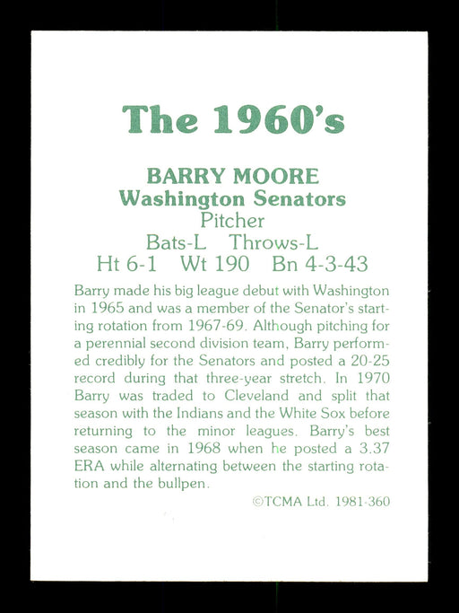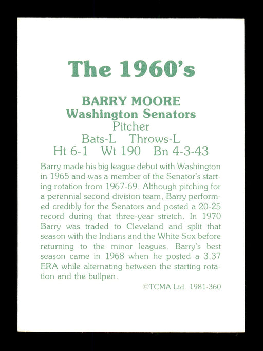 This is a 1981 TCMA Card #360 that has been hand signed by Barry Moore. This item is guaranteed to pass any third party authentication company incl...