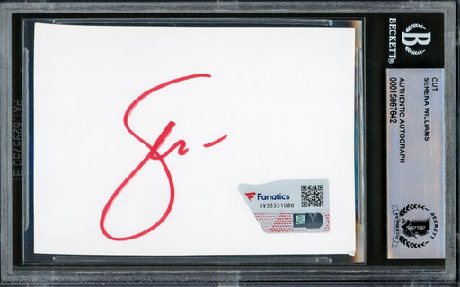This is a 2.5x3.5 Cut Signature that has been hand signed by Serena Williams. It has been certified authentic by Beckett Authentication Services (B...