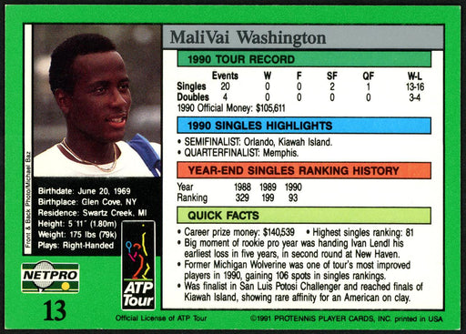 $12.00MaliVai Washington Autographed 1991 NetPro Tour Star Card #13 SKU #148268