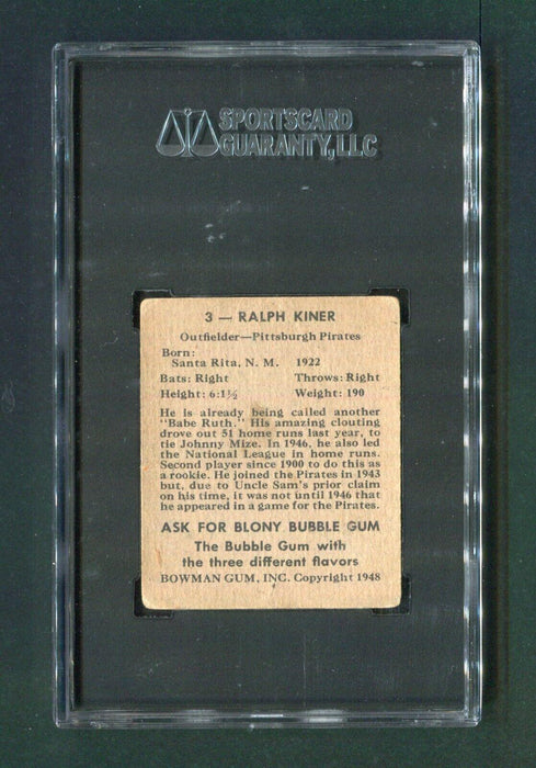 1948 Bowman Ralph Kiner #3 SGC Signed Rookie Baseball Card