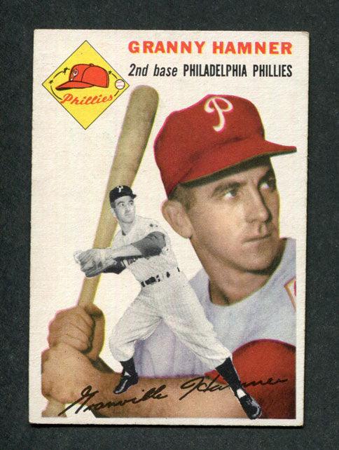 This is an original 1954 Topps baseball card. The Granny Hamner card pictured is the exact card you will receive