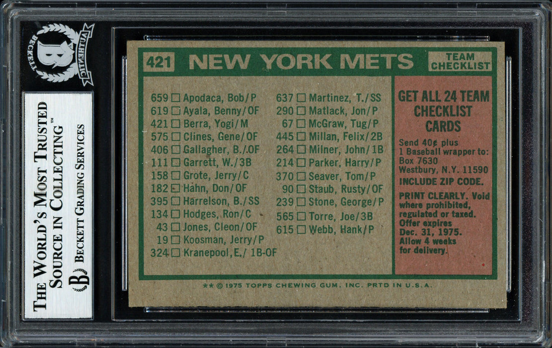 Al "Rube" Walker Autographed 1975 Topps Card #421 New York Mets Beckett BAS #12057489