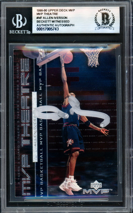 Allen Iverson Autographed 1999-00 Upper Deck MVP Theatre Card #M7 Philadelphia 76ers Beckett BAS Witness #17005743