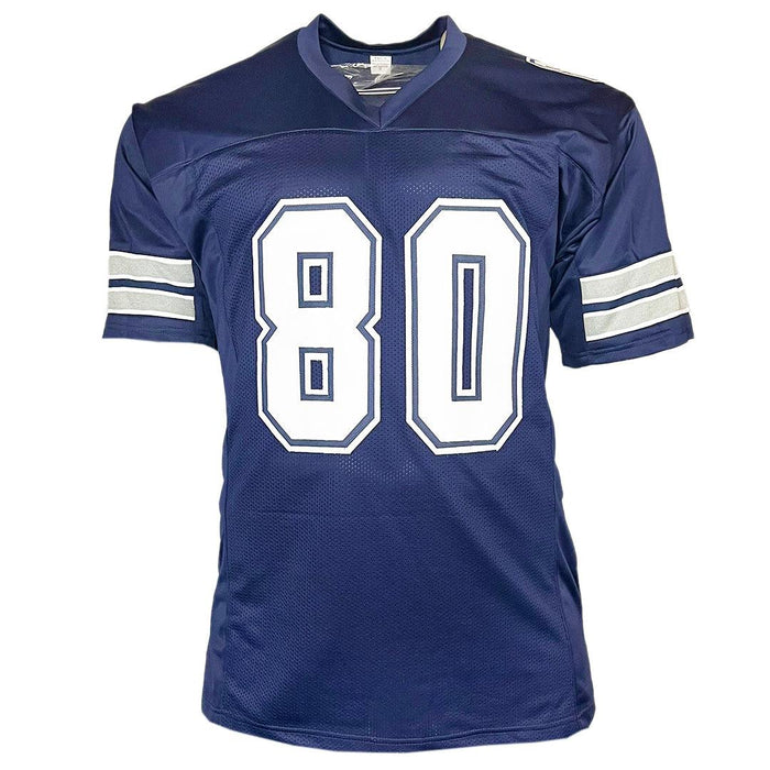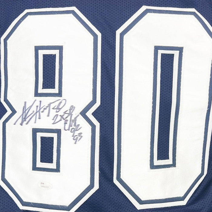 Alvin Harper Signed 2x SB Champs Inscription Dallas Navy Football Jersey (JSA)