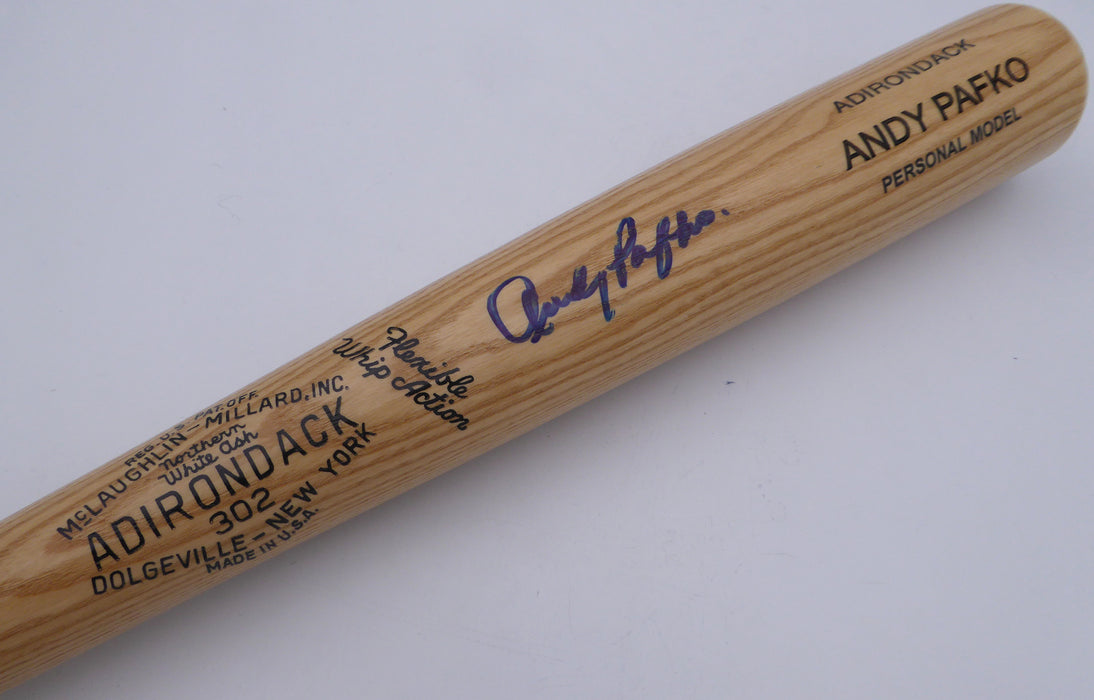 This is an Adirondack Bat that has been hand signed by Andy Pafko . This item has been certified authentic by Beckett Authentication (BAS) and comes with their tamper-proof QR Code sticker that can be verified on the Beckett-authentication.com.