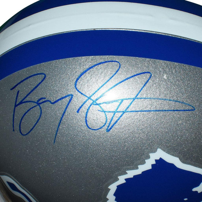 Barry Sanders Signed Detroit Lions Full-Size Replica Silver Football Helmet (JSA)