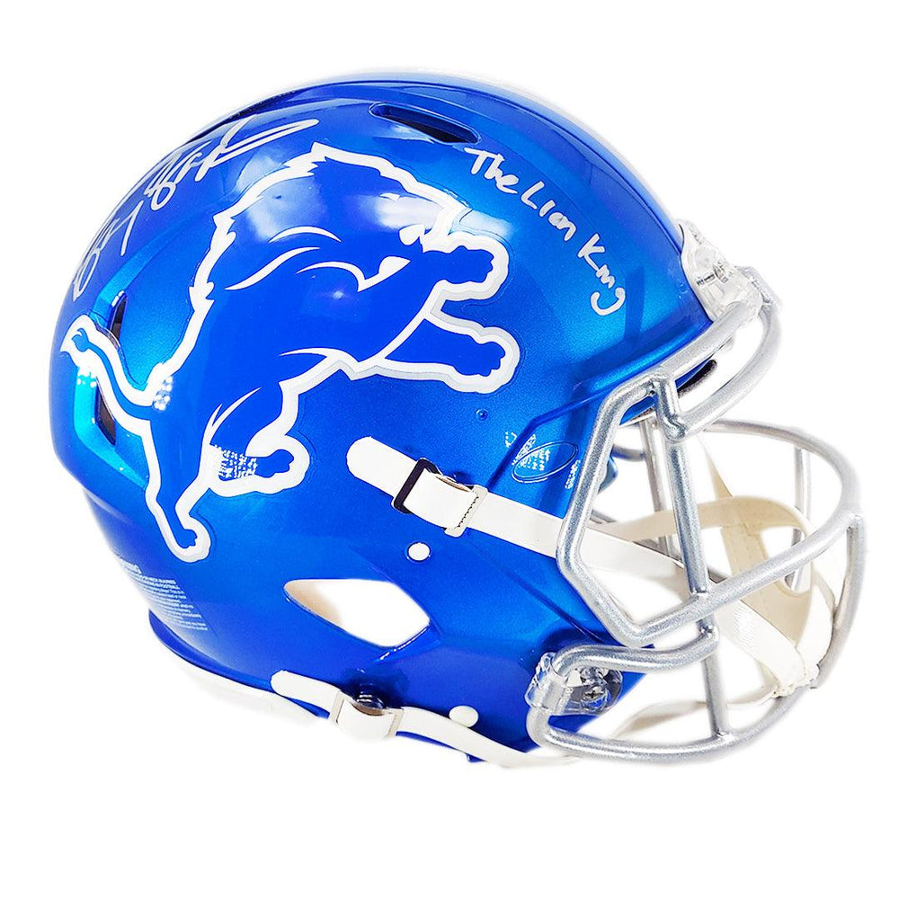 - A full-size authentic Riddell Speed NFL football helmet autographed by Barry Sanders with The Lion King inscription and authenticated by JSA
