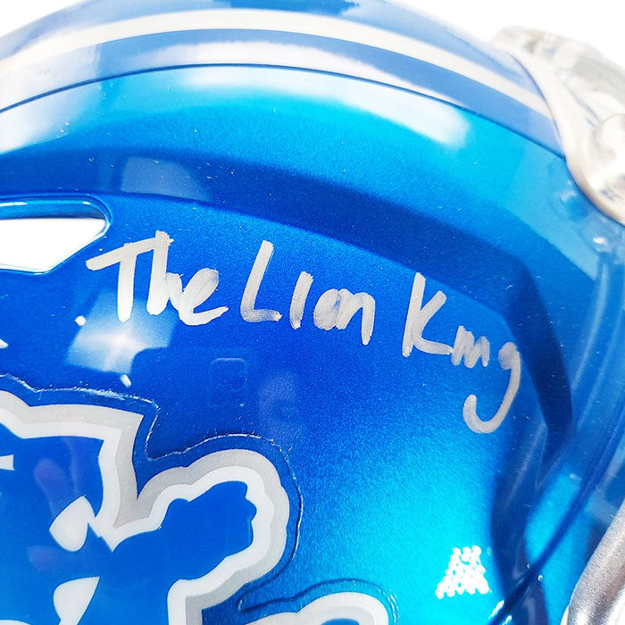 Barry Sanders Signed The Lion King Inscription Detroit Lions Authentic Flash Speed Full-Size Football Helmet (JSA)