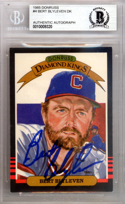 This is a 1985 Donruss Card #4 that has been hand signed by Bert Blyleven. It has been certified authentic by Beckett Authentication (BAS) and comes encapsulated in their tamper-proof holder.
