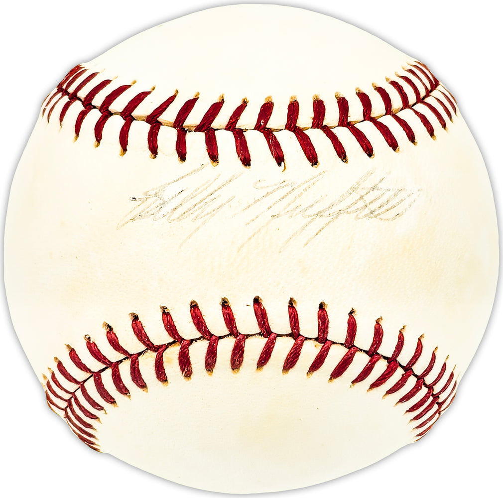 This is an Official Giles NL Baseball that has been hand signed by Billy Muffett. There is toning in the item as shown. This item has been certified authentic by Beckett Authentication (BAS) and comes with their tamper-proof QR Code hologram that can be verified on the Beckett-authentication.com.