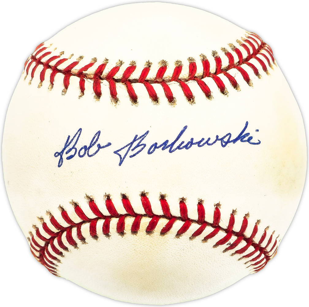 This is an Official National League Baseball that has been hand signed by Bob Borkowski. There is toning in the item as shown. This item has been certified authentic by Beckett Authentication (BAS) and comes with their tamper-proof QR Code hologram that can be verified on the Beckett-authentication.com.