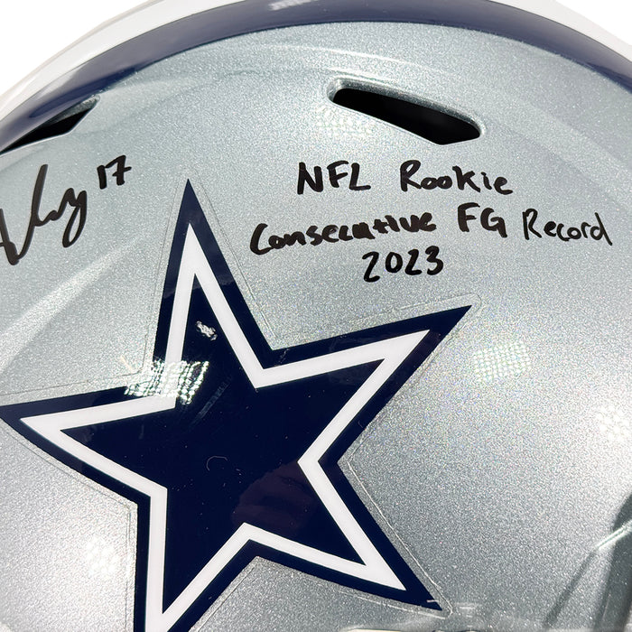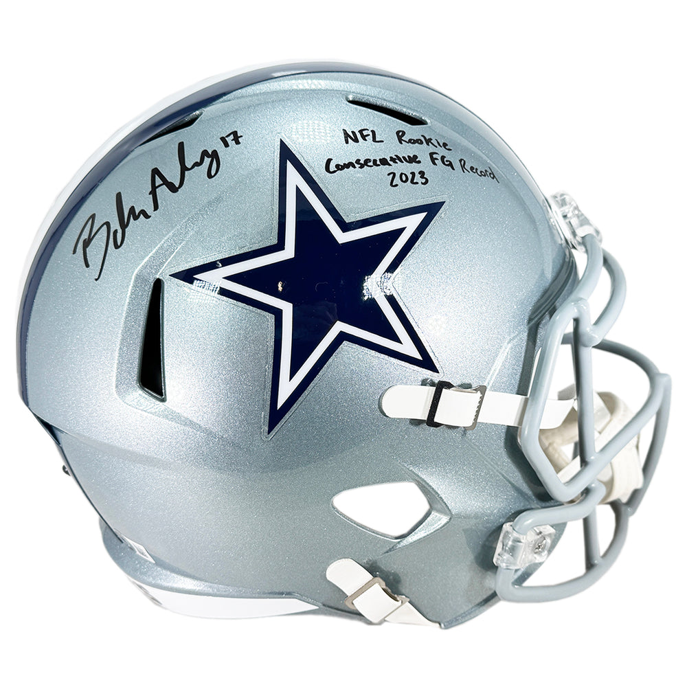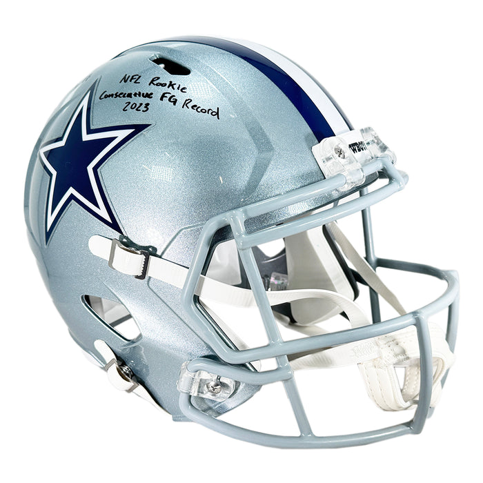 Brandon Aubrey Signed NFL Rookie Consectutive FG Record 2023 Inscription Dallas Cowboys Speed Full-Size Replica Football Helmet (Beckett)