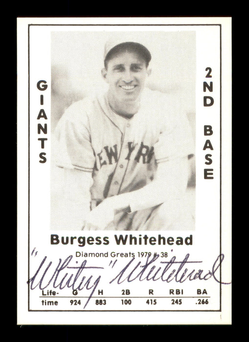 Burgess "Whitey" Whitehead Autographed 1979 Diamond Greats Card #38 New York Giants SKU #188663