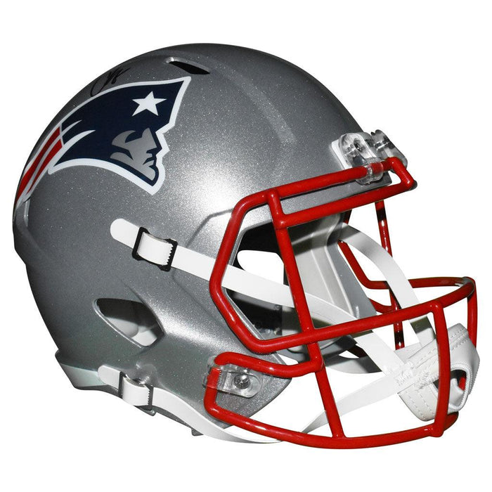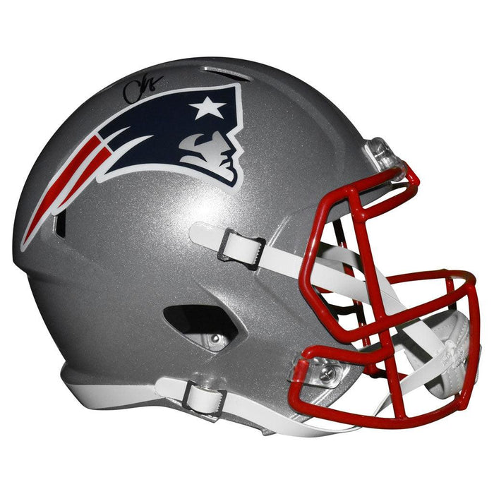 Chad Johnson Signed New England Patriots Speed Full-Size Replica Silver Football Helmet (JSA)
