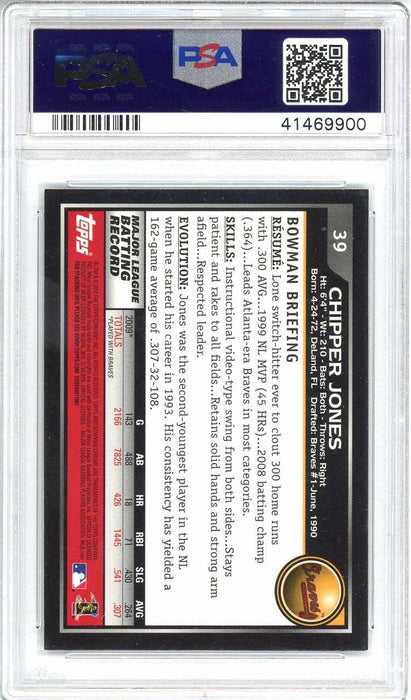 Chipper Jones Autographed 2010 Bowman Chrome Card #39 Atlanta Braves PSA/DNA #41469900