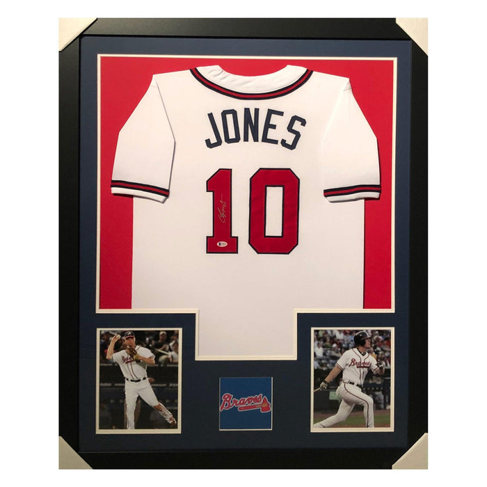 Chipper Jones Signed Atlanta Framed Vertical Layout Pro Edition White Jersey (Beckett)