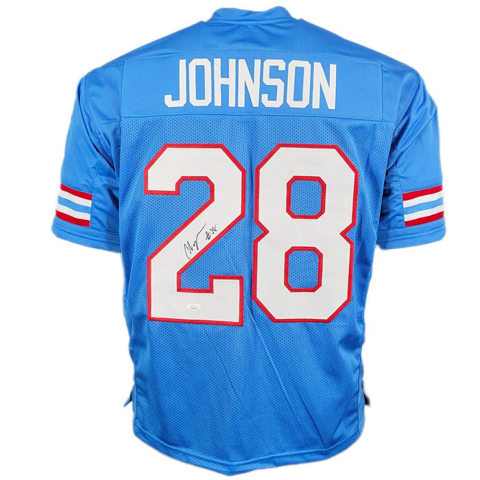 - A professional style light blue custom replica football jersey autographed by Chris Johnson and authenticated by BECKETT