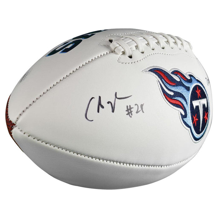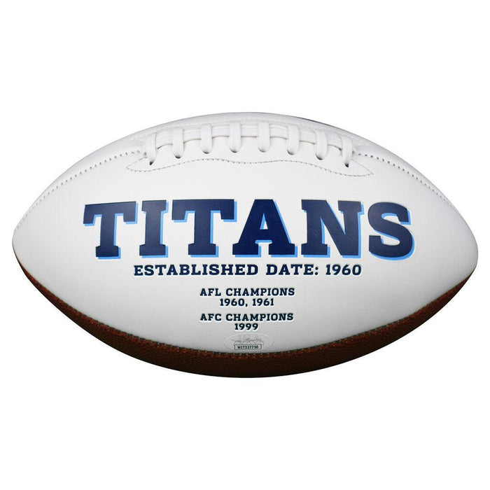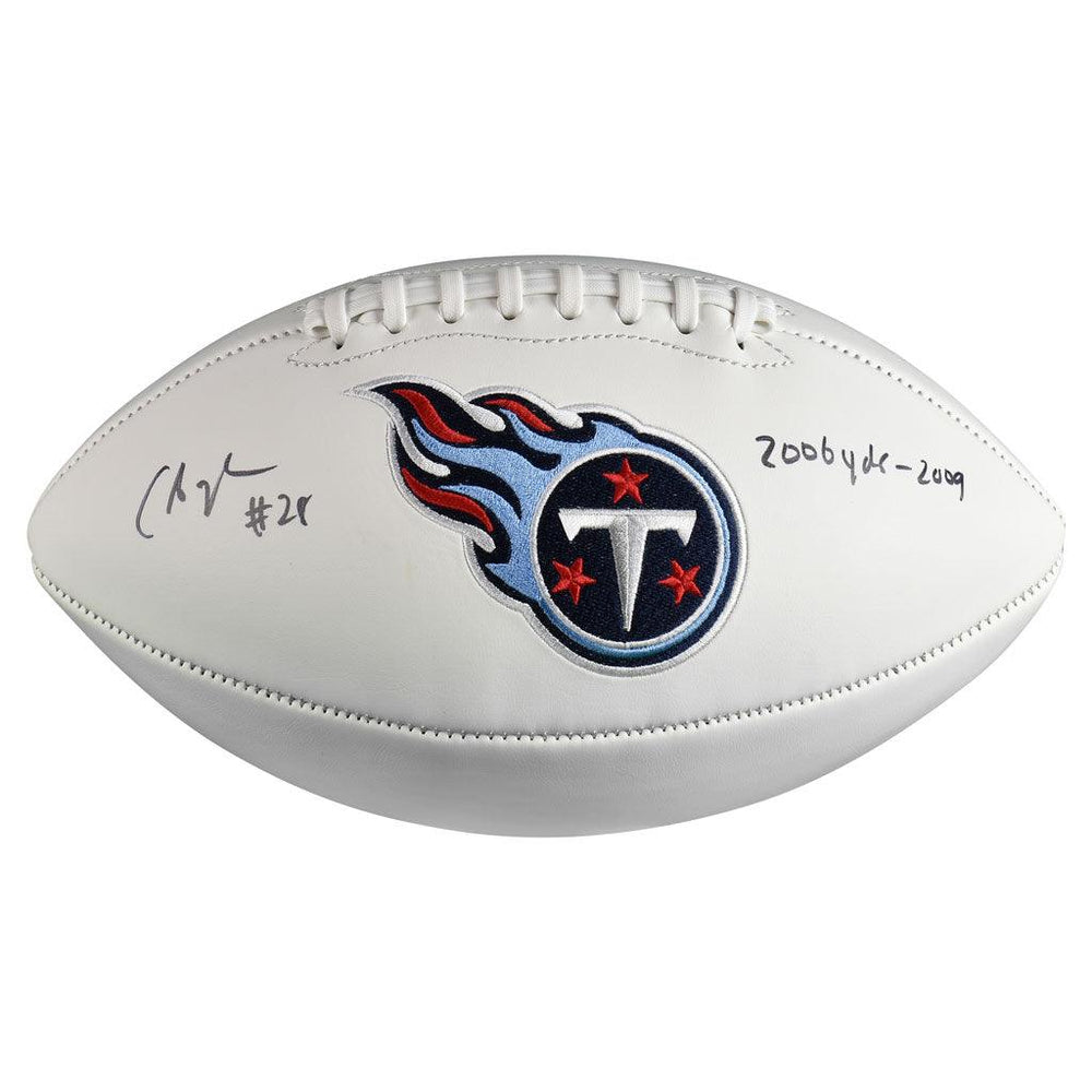 - A full-size Tennessee Titans stitched logo football autographed by Chris Johnson and authenticated by JSA