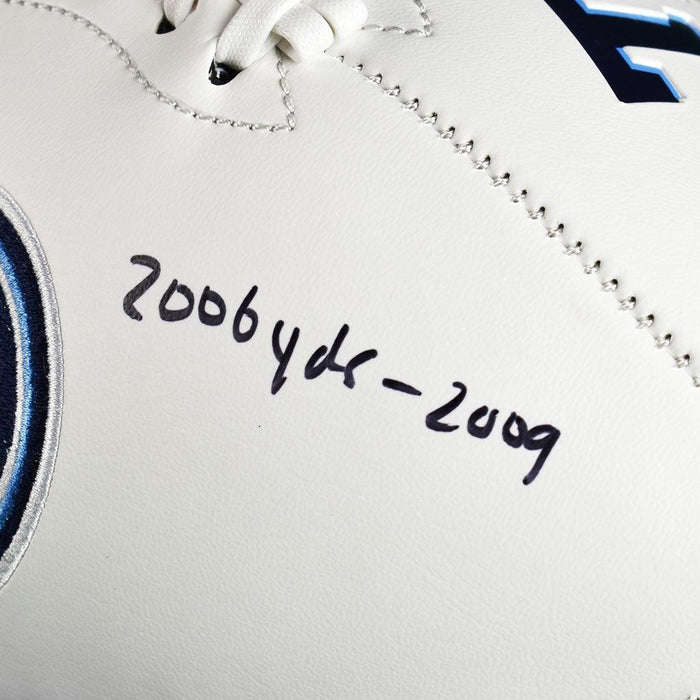 Chris Johnson Signed Tennessee Titans Logo Football 2006 yds 2009 Inscription (JSA)