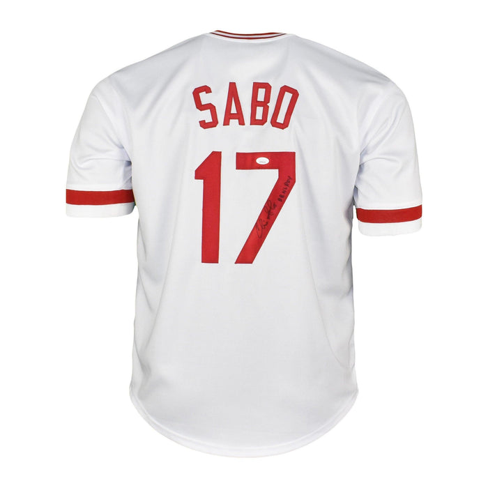 Chris Sabo Signed Cincinnati White Jersey (JSA) 88 NL Roy Inscription
