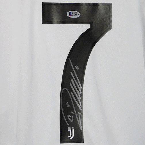 A professional-style Juventus soccer jersey autographed by Christiano Ronaldo and authenticated by Beckett.
