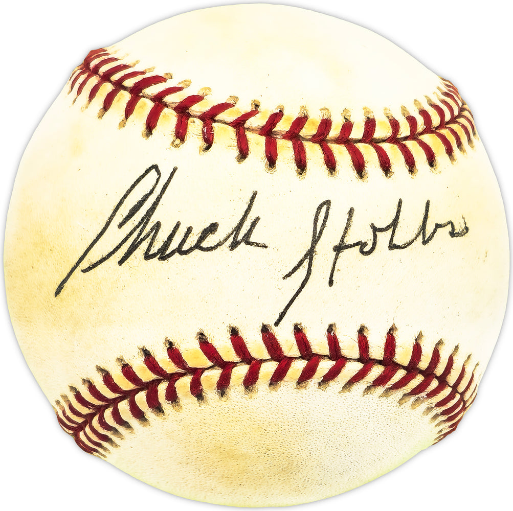 This is an Official American League Baseball that has been hand signed by Chuck Stobbs. There is toning in the item as shown. This item has been certified authentic by Beckett Authentication (BAS) and comes with their tamper-proof QR Code hologram that can be verified on the Beckett-authentication.com.