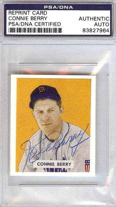 This is a 1949 Bowman Reprint Card #180 that thas been hand signed by Connie Berry. It has been authenticated by PSA/DNA and comes encapsulated in their tamper-proof holder.