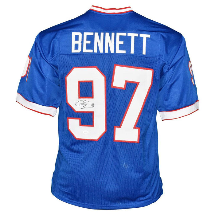 - A professional style blue custom replica football jersey autographed by Cornelius Bennett and authenticated by JSA