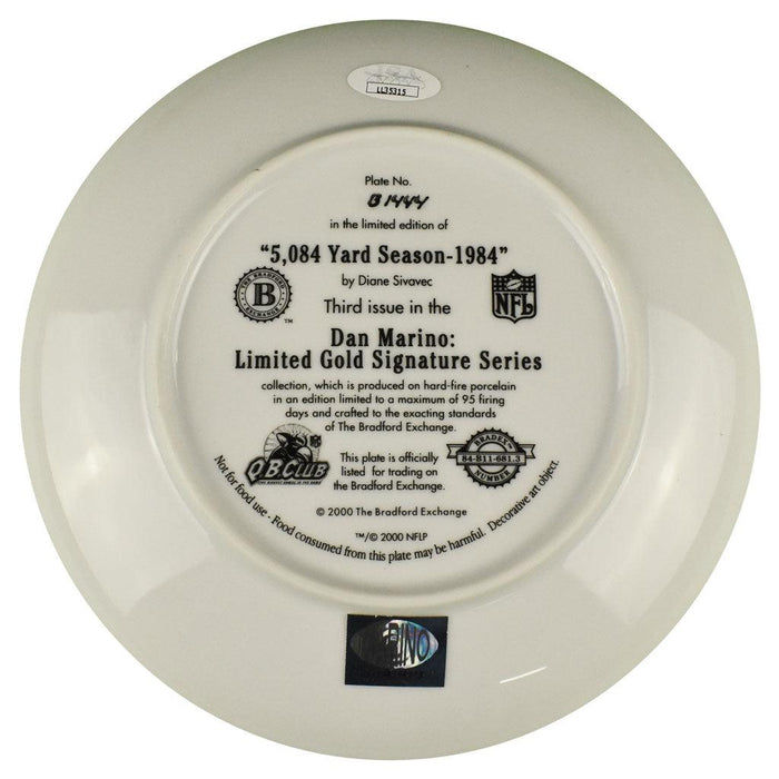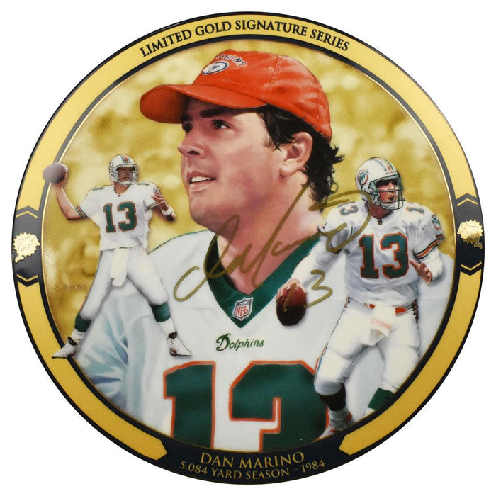 - A limited edition collector's plate from The Bradbury Exchange signed by Dan Marino. This unique piece of the Limited Gold Signature Series pays tribute to Dan Marino's record of throwing for 5084 passing yards in a single season.