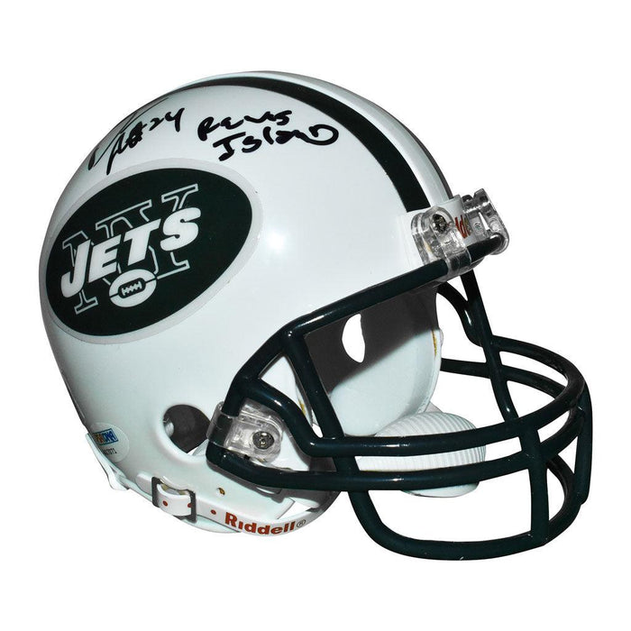 Darrelle Revis Signed Revis Island Inscription New York Jets Mini Replica White Football Helmet (PSA)
