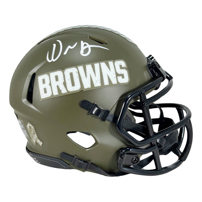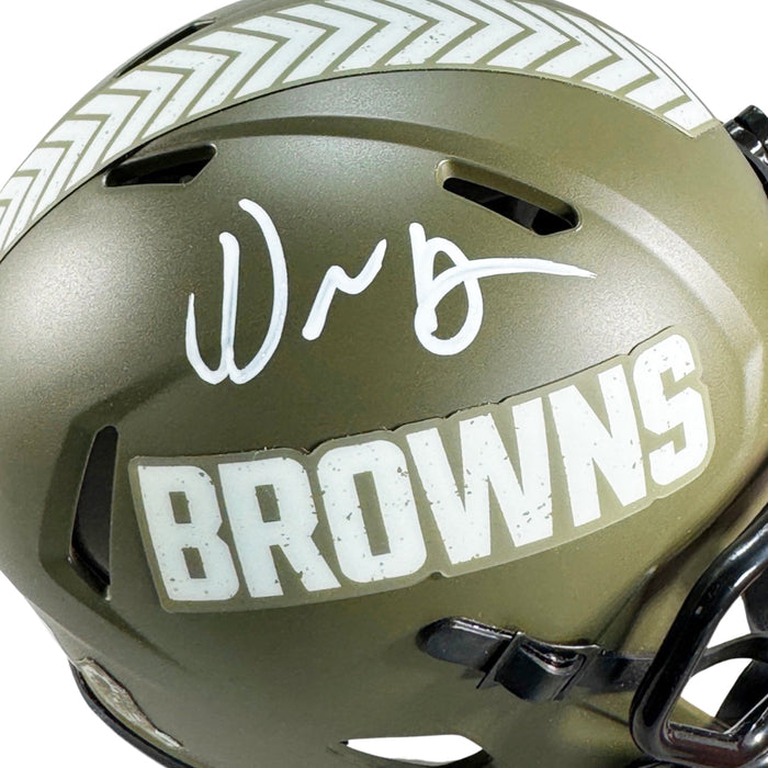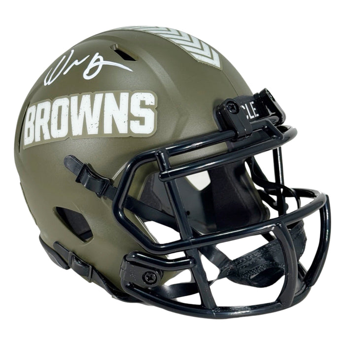 David Njoku Signed Cleveland Browns Salute to Service Mini Football Helmet (Beckett)