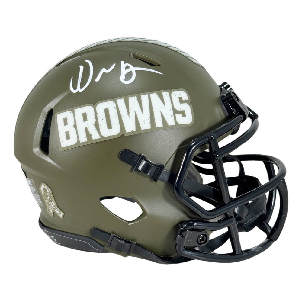 - Speed mini NFL football helmet autographed by David Njoku and authenticated by Beckett