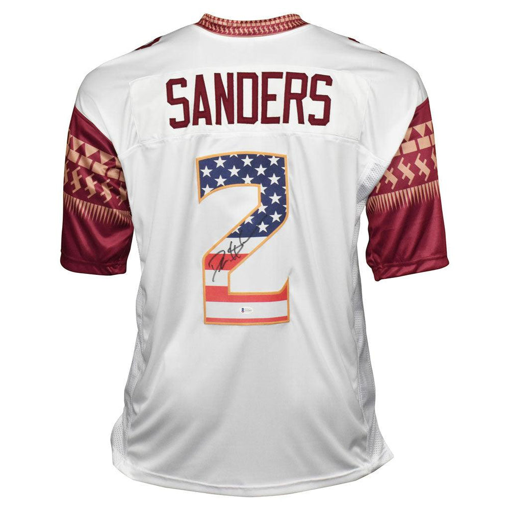 - A professional style usa custom replica football jersey autographed by Deion Sanders and authenticated by Beckett
