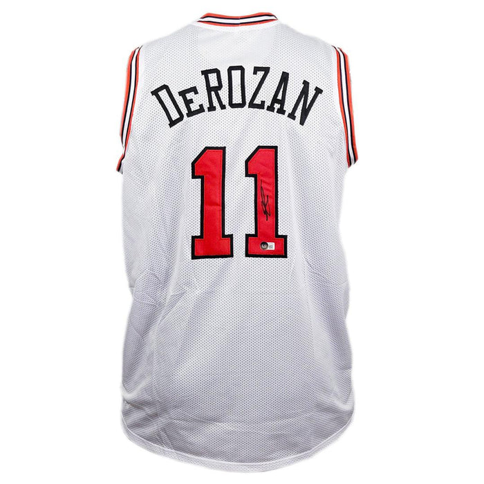 - A professional style white custom replica basketball jersey autographed by DeMar DeRozan and authenticated by Beckett