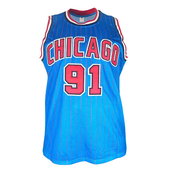 Dennis Rodman Signed Chicago Light Blue Basketball Jersey (Beckett)