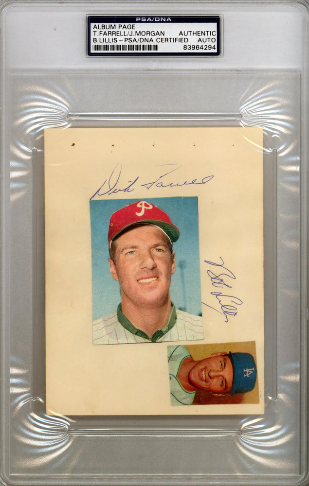 This is a 4.5x6 Album Page that has been hand signed by Dick "Turk" Farrell. This item is also signed by Joe Morgan and Bob Lillis. It has been certified authentic by PSA/DNA and comes encapsulated in their tamper-proof holder.