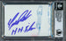 This is a 2021-22 Select In Flight Printing Plates Cyan Card #4 that has been hand signed by Dominique Wilkins. The condition of the signature was graded a Gem Mint 10 by Beckett BAS Witness. This item was inscribed "HH Film." This is a limited edition item that has been serial numbered #1/1. It has been witnessed and certified authentic by Beckett BAS Witness and comes encapsulated in their tamper-proof holder.