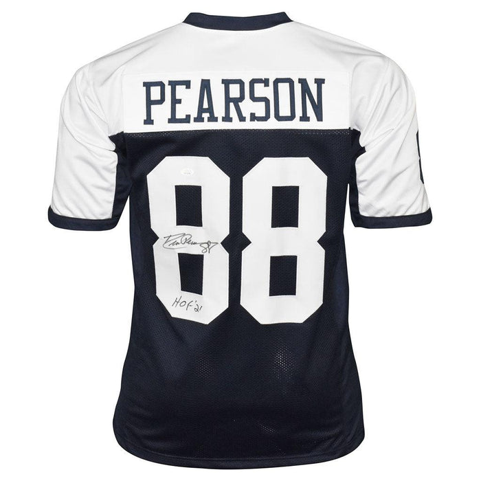 Drew Pearson Signed HOF 21 Inscription Dallas Thanksgiving Football Jersey (Beckett)