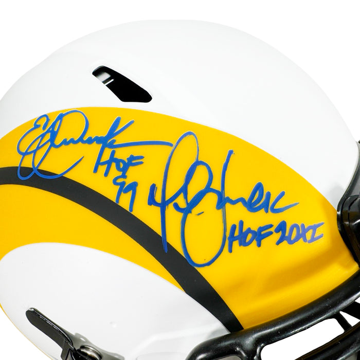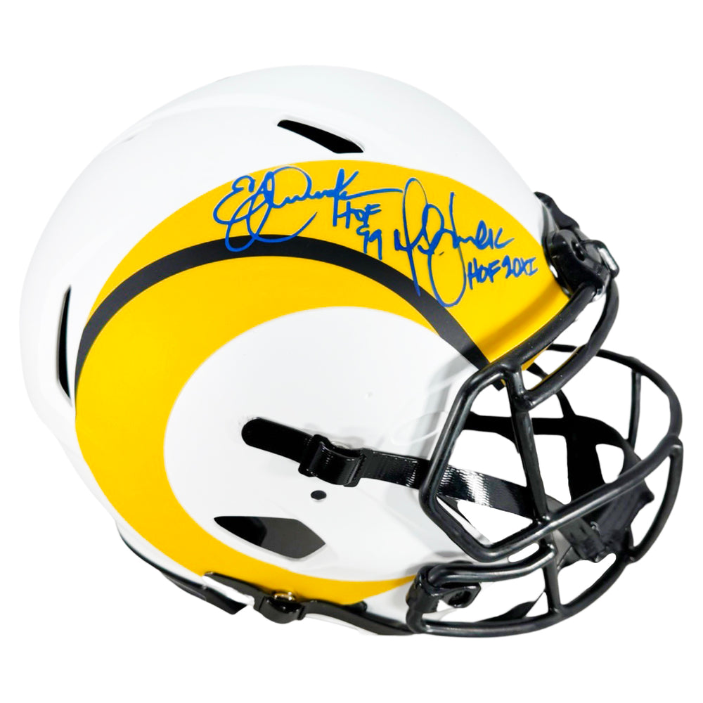 Dual Signature Marshall Faulk & Eric Dickerson Signed HOF Inscribed St. Louis Rams Authentic Lunar Speed Full-Size Football Helmet (Beckett)