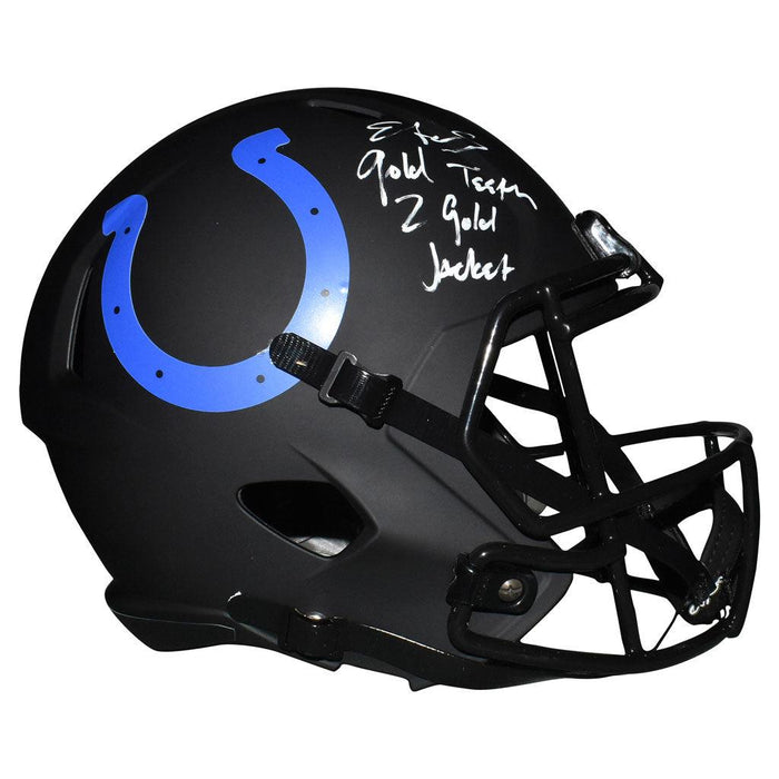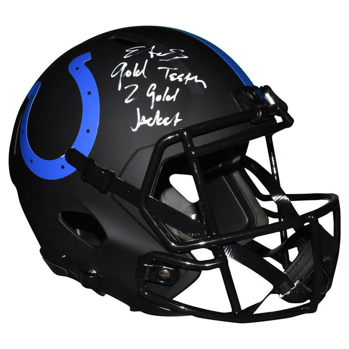 Edgerrin James Signed Gold Teeth 2 Gold Jacket Inscription Indianapolis Colts Eclipse Speed Full-Size Replica Football Helmet (JSA)