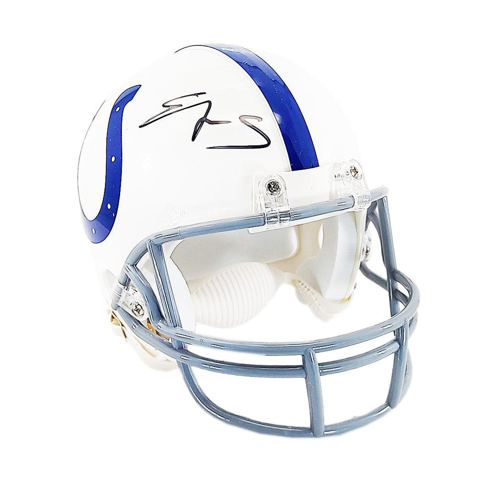 - A mini replica Riddell NFL football helmet autographed by Edgerrin James and authenticated by JSA