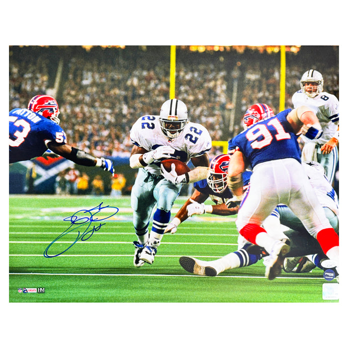 Emmitt Smith Signed Dallas Cowboys Pose 3 Football 16x20 Photo Blue Ink (JSA)