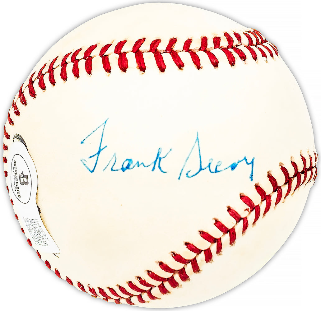 This is an Official National League Baseball that has been hand signed by Frank Secory. There is toning in the item as shown. This item has been certified authentic by Beckett Authentication (BAS) and comes with their tamper-proof QR Code hologram that can be verified on the Beckett-authentication.com.