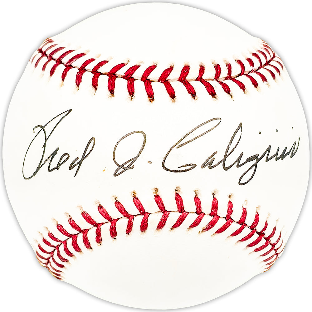 This is an Official MLB Baseball that has been hand signed by Fred Caligiuri. This item has been certified authentic by Beckett Authentication (BAS) and comes with their tamper-proof QR Code hologram that can be verified on the Beckett-authentication.com.