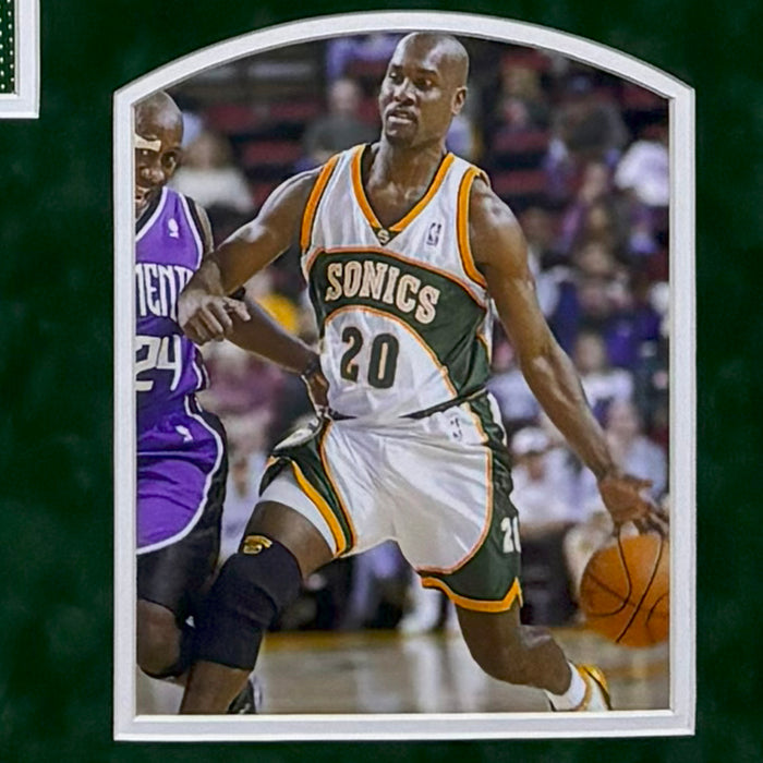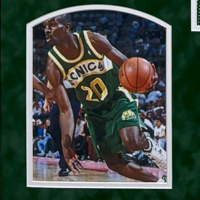 Gary Payton Signed Seattle Green Custom Suede Matte Framed Basketball Jersey