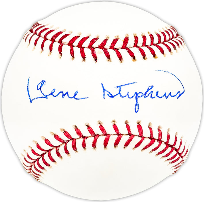 This is an Official MLB Baseball that has been hand signed by Gene Stephens. This item has been certified authentic by Beckett Authentication (BAS) and comes with their tamper-proof QR Code hologram that can be verified on the Beckett-authentication.com.