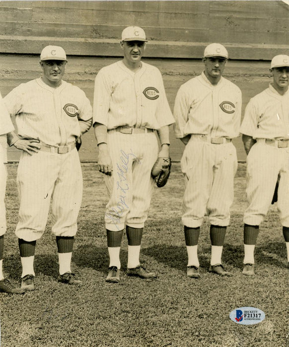George Kelly Autographed 8x9.5 Photo Cincinnati Reds Beckett BAS #F21317