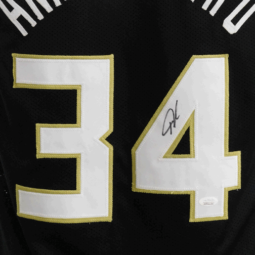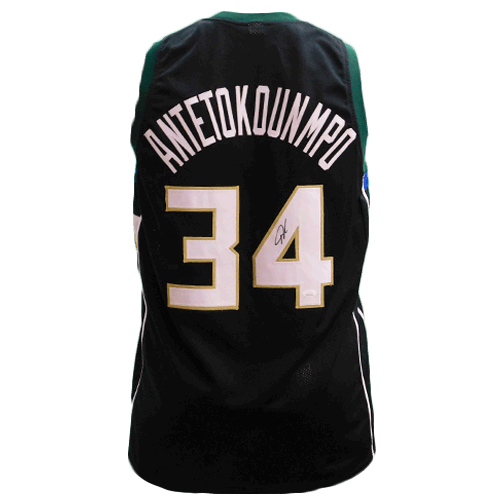 Giannis Antetokounmpo Autographed Pro Basketball Black Jersey "The Greek Freak"(JSA)