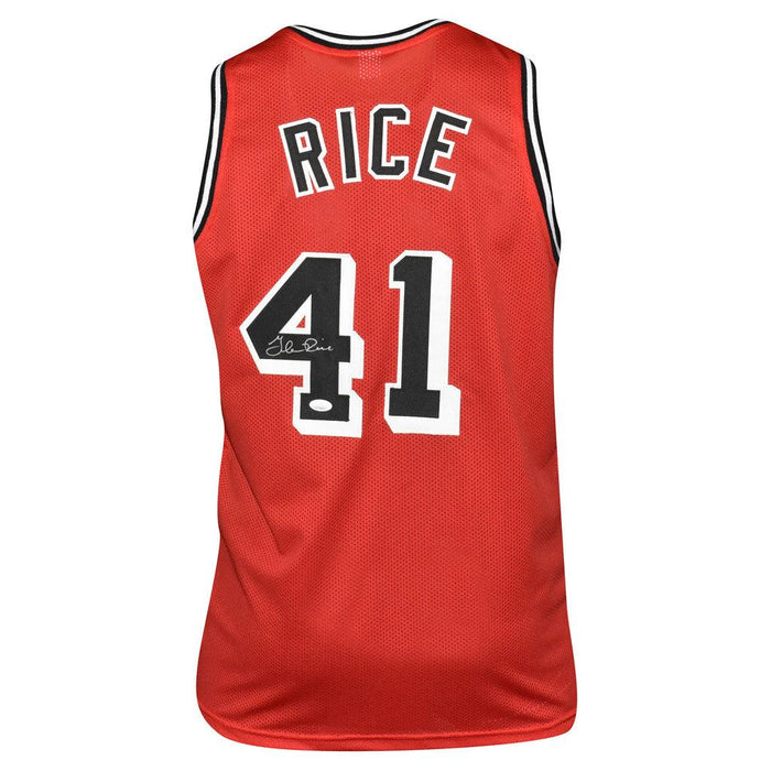 - A professional style red custom replica basketball jersey autographed by Glen Rice and authenticated by JSA