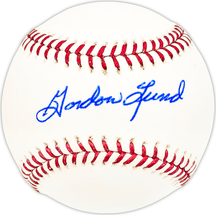 This is an Official MLB Baseball that has been hand signed by Gordon Lund. This item has been certified authentic by Beckett Authentication (BAS) and comes with their tamper-proof QR Code hologram that can be verified on the Beckett-authentication.com.